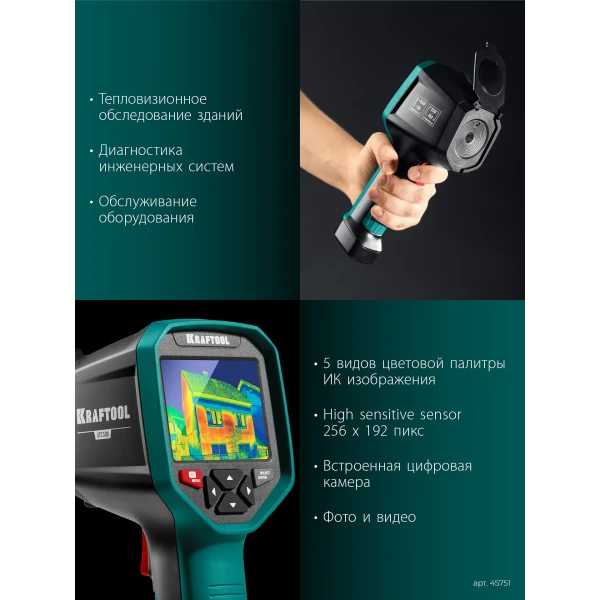 Тепловизоры KRAFTOOL обеспечивают точное обнаружение и локализацию утечек или дефектов ограждающих конструкций, незаменимы для профилактического и предупредительного обслуживания, диагностики состояния зданий и помещений.
