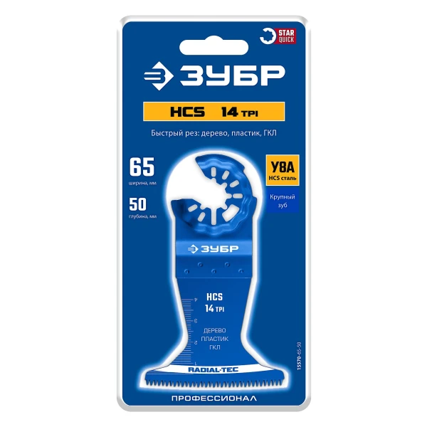 ЗУБР HCS 65x50 мм, 14TPI полотно пильное, быстрый рез: дерево, пластик, ГКЛ, StarQuick (15570-65-50)