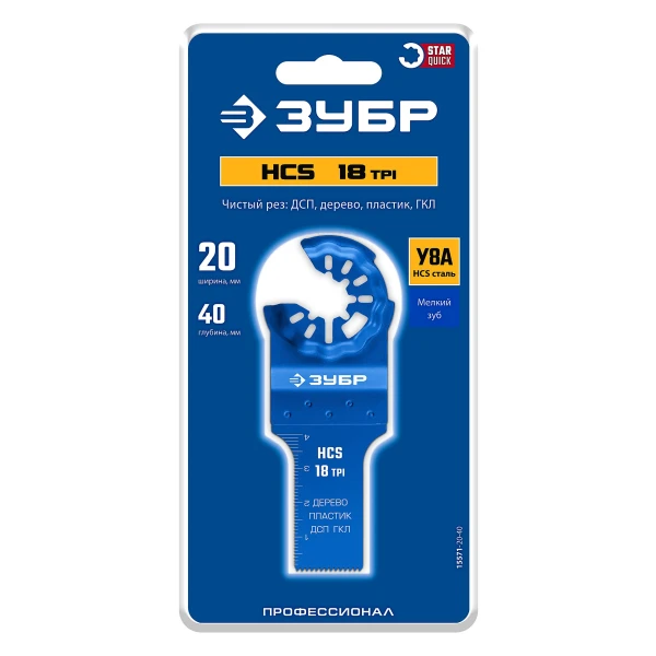 ЗУБР HCS 20x40 мм, 18TPI полотно пильное, чистый рез: дерево, пластик, ДСП, ГКЛ, StarQuick (15571-20-40)