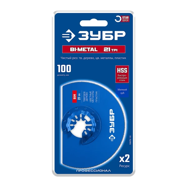 ЗУБР BIM d 100 мм, 21TPI полотно биметаллическое дисковое, чистый рез: твердое дерево, цветные металлы, пластик, StarQuick (15575-100)