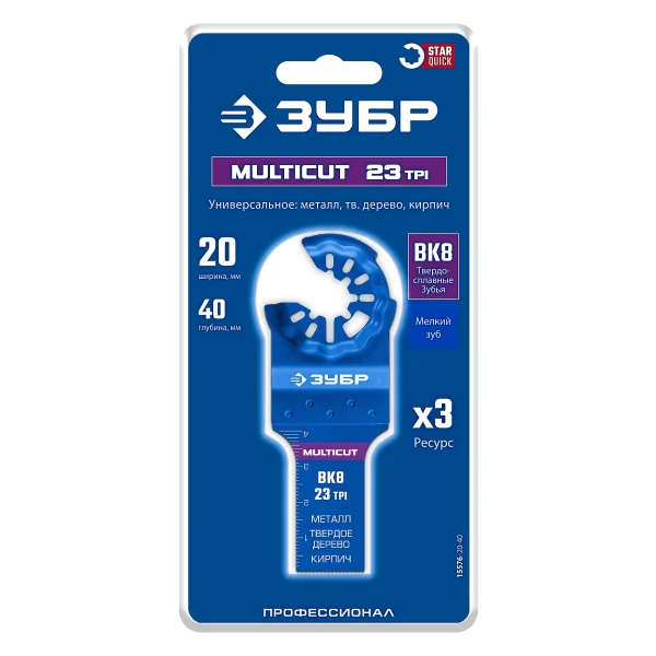 ЗУБР MULTICUT ВК8 23TPI, 20x40 мм полотно универсальное с твердосплавными зубьями: металл, твёрдое дерево, кирпич, StarQuick (15576-20-40)