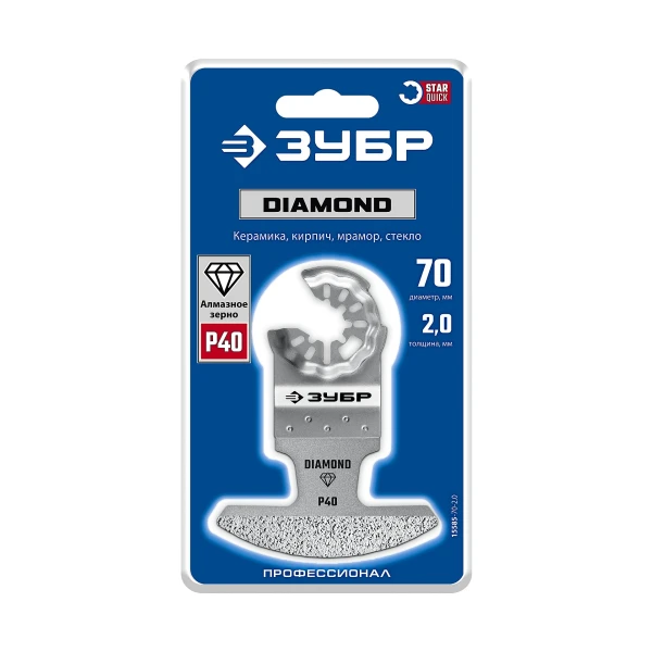 ЗУБР DIAMOND 70x2.0 мм полотно с алмазным зерном Р40: керамика, мрамор, стекло, кирпич, StarQuick (15585-70-2.0)