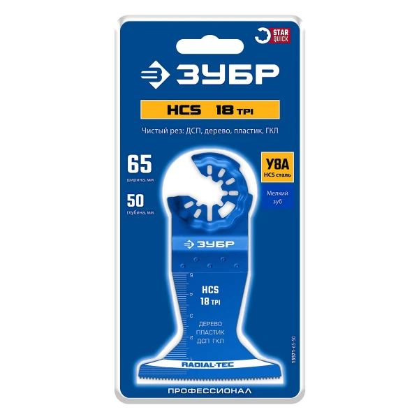 ЗУБР HCS 65x50 мм, 18TPI полотно пильное, чистый рез: дерево, пластик, ДСП, ГКЛ, StarQuick (15571-65-50)