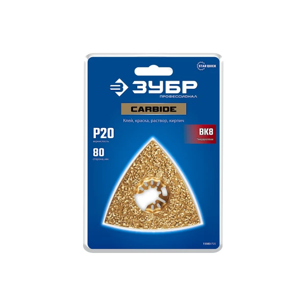 ЗУБР CARBIDE ВК8 Р20, 80 мм полотно треугольное зачистное с твердосплавной крошкой: клей, краска, раствор, кирпич, пенобетон, StarQuick (15583-P20)