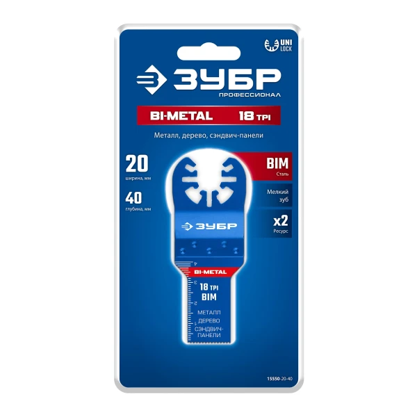ЗУБР BIM 20x40 мм, 18TPI полотно пильное, универсальный чистый рез: металл, твердое дерево, пластик, UniLock (15550-20-40)
