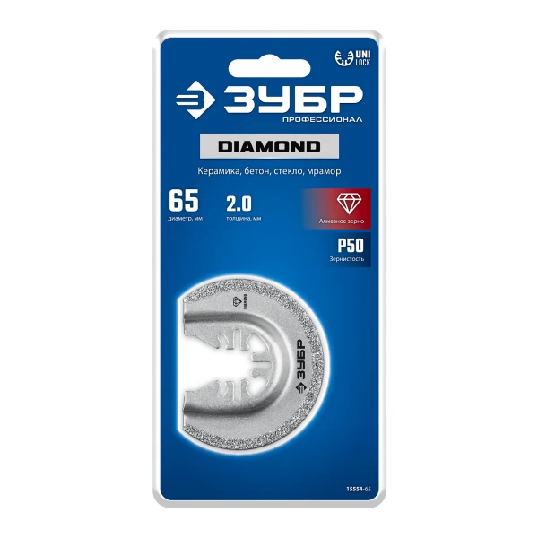 ЗУБР DIAMOND 65x2.0 мм полотно пильное с алмазным зерном Р50: керамика, бетон, кирпич, UniLock (15554-65)