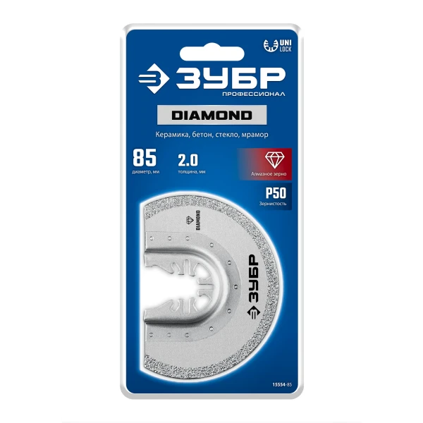 ЗУБР DIAMOND 85x2.0 мм полотно пильное с алмазным зерном Р50: керамика, бетон, кирпич, UniLock (15554-85)