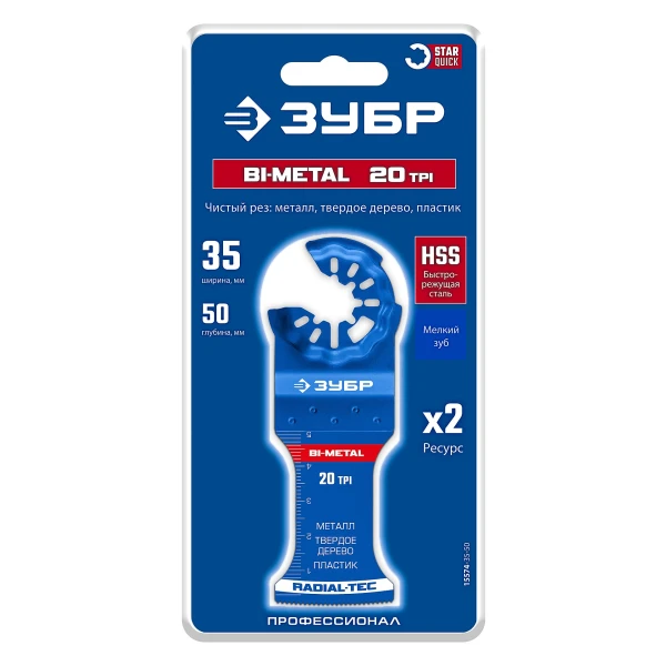 ЗУБР BIM 35x50 мм, 20TPI полотно биметаллическое, чистый рез: металл, твердое дерево, пластик, StarQuick (15574-35-50)