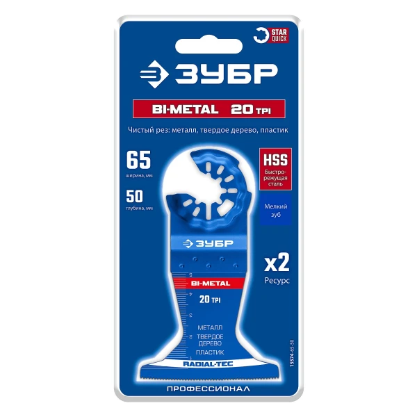 ЗУБР BIM 65x50 мм, 20TPI полотно биметаллическое, чистый рез: металл, твердое дерево, пластик, StarQuick (15574-65-50)