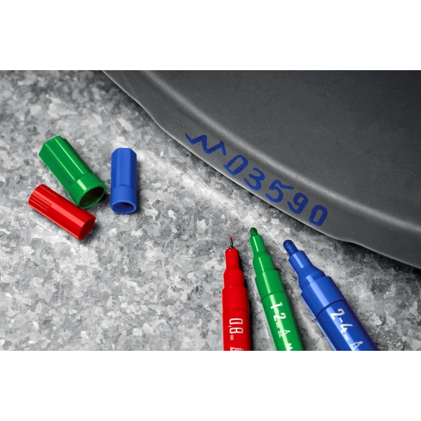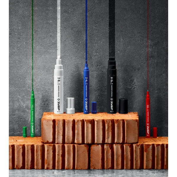 Универсальный маркер с экстра тонким носиком жидкой быстросохнущей краской подходит практически для любой поверхности. Практичеcки безопасен для человека, поскольку не имеет в составе токсичных веществ, таких как ксилол. Данный маркер не смывается водой, не выгорает на солнце и устойчив к температурным перепадам.