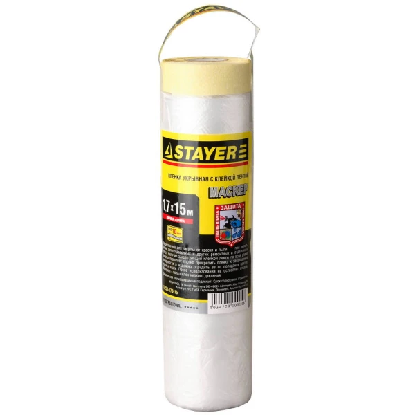 STAYER 15 м, 1.7 м, 9 мкм, с клейкой лентой маскер, защитная пленка, Professional (12255-170-15)