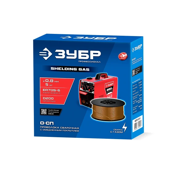 ЗУБР О-СП, d 0.8 мм, 5 кг, омеднённая сварочная проволока, тип ER70S-6 (аналог Св-08Г2С-О), Профессионал (40075-0.8-5)