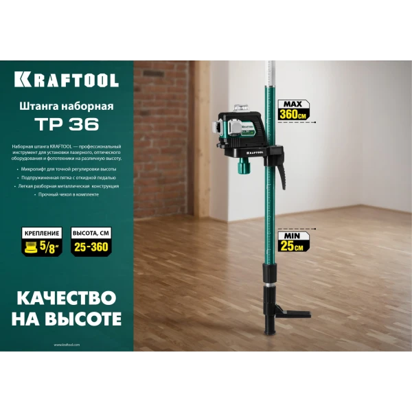 KRAFTOOL ТР 36, элевационная распорная наборная штанга-штатив с треногой (34823)
