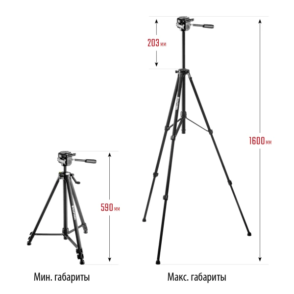 Профессиональный аксессуар для работы с лазерным, оптическим и фотоинструментом. Прибор можно точно установить на нужной высоте при помощи выдвижной колонки. Выполнен из алюминиевого сплава, благодаря чему имеет небольшой вес. А за счёт малого размера в сложенном виде штатив легко носить и легко с ним работать.
