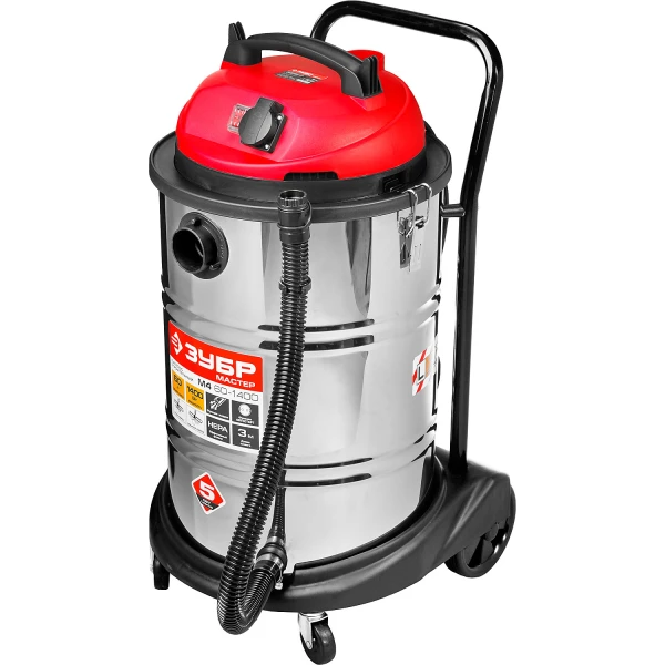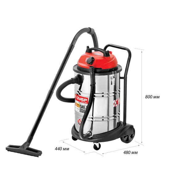 Строительный пылесос ЗУБР предназначен для уборки помещений, а также для принудительного удаления продуктов пиления, строгания, фрезерования и т.п. из рабочей зоны электроинструмента. Он незаменим для поддержания чистоты в гараже, мастерской, удаления мусора во время ремонта в квартире или на даче. Бак из нержавеющей стали объемом 60 л очень долговечен. а синхронное включение с инструментом, подключенным через розетку пылесоса позволит сохранить чистоту на рабочем месте.