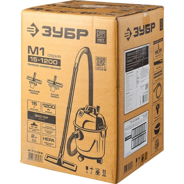 ЗУБР М1, 15 л, 1200 Вт, хозяйственный пылесос (ПУ-15-1200 М1)