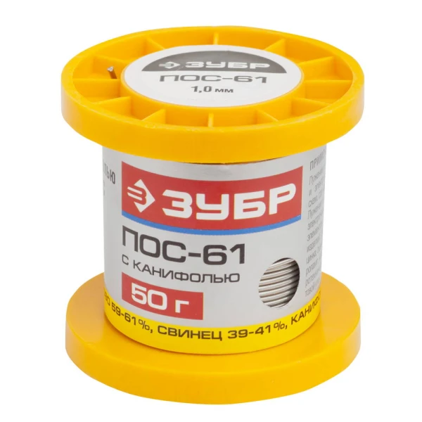 ЗУБР 50 г, 1 мм, трубка, ПОС 61, припой (55450-050-10C)