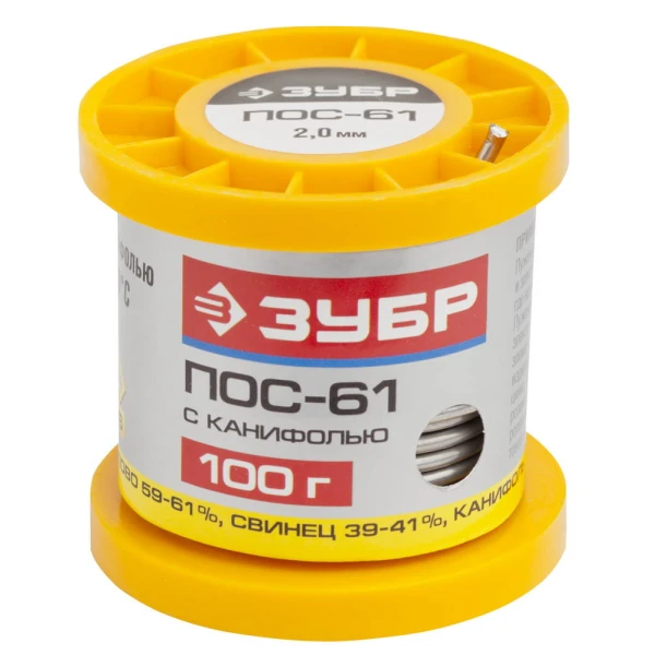 ЗУБР 100 г, 2 мм, трубка, ПОС 61, припой (55450-100-20C)