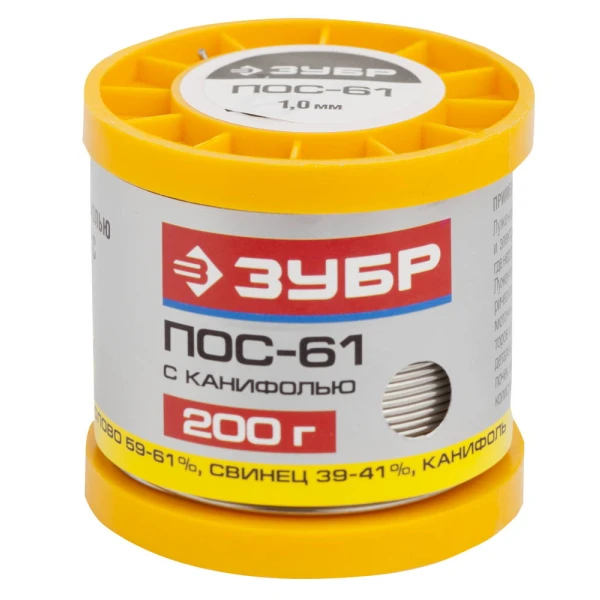ЗУБР 200 г, 1 мм, трубка, ПОС 61, припой (55450-200-10C)