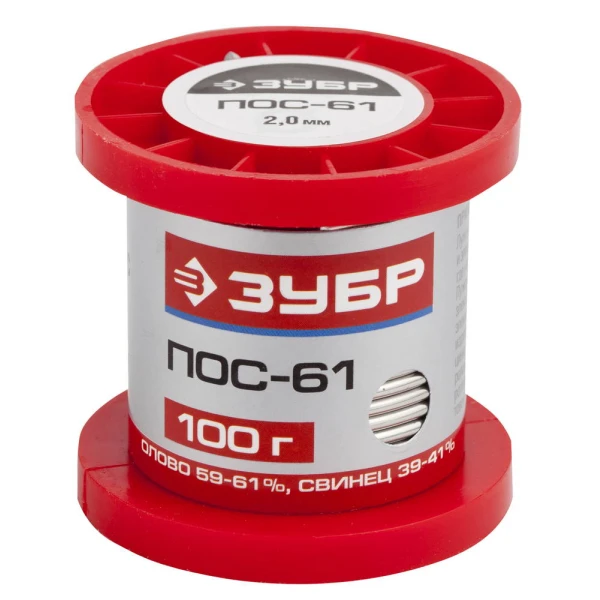 ЗУБР 100 г, 2 мм, проволока, ПОС 61, припой (55450-100-20)