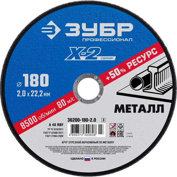 ЗУБР 180 x 2.0 x 22.2 мм, для УШМ, круг отрезной по металлу, Профессионал (36200-180-2.0)