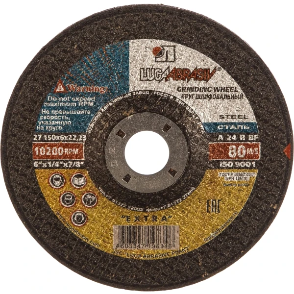 ЛУГА 150 х 6 х 22.2 мм, для УШМ, круг шлифовальный по металлу (3650-150-06)