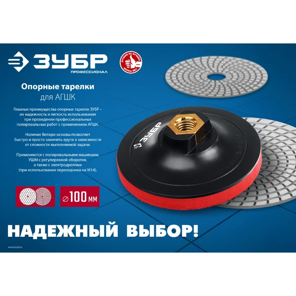 Неоспоримыми преимуществами опорных тарелок ЗУБР являются их простота применения, увеличенный рабочий ресурс и универсальность при обработке различных материалов.