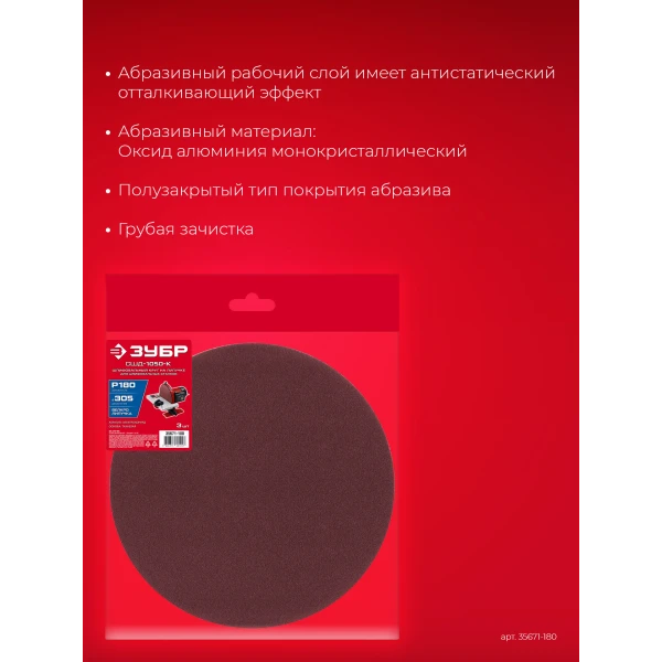 ЗУБР СШД-1050-К 305 мм, Р180, шлифовальный круг на липучке, 3 шт. (35671-180)