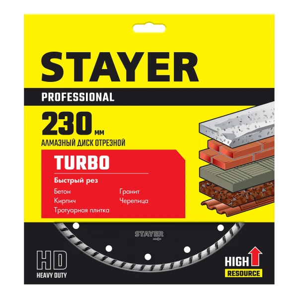 STAYER TURBO, 230 мм, (22.2 мм, 7 х 3.1 мм), сегментированный алмазный диск, Professional (3662-230)