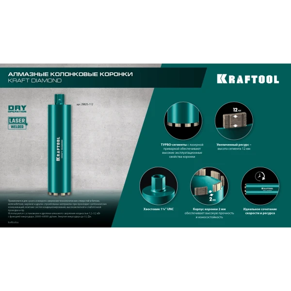 KRAFTOOL DIAMOND 32 мм (450 мм, 1 1/4″, лазерная сварка сегментов), Алмазная Коронка по железобетону (29825-032)