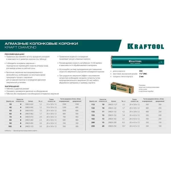 KRAFTOOL DIAMOND 42 мм (450 мм, 1 1/4″, лазерная сварка сегментов), Алмазная Коронка по железобетону (29825-042)
