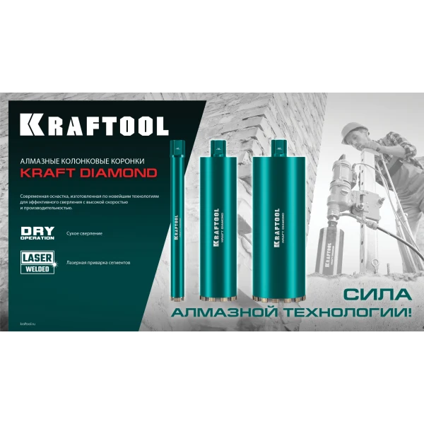 KRAFTOOL DIAMOND 122 мм (450 мм, 1 1/4″, лазерная сварка сегментов), Алмазная Коронка по железобетону (29825-122)