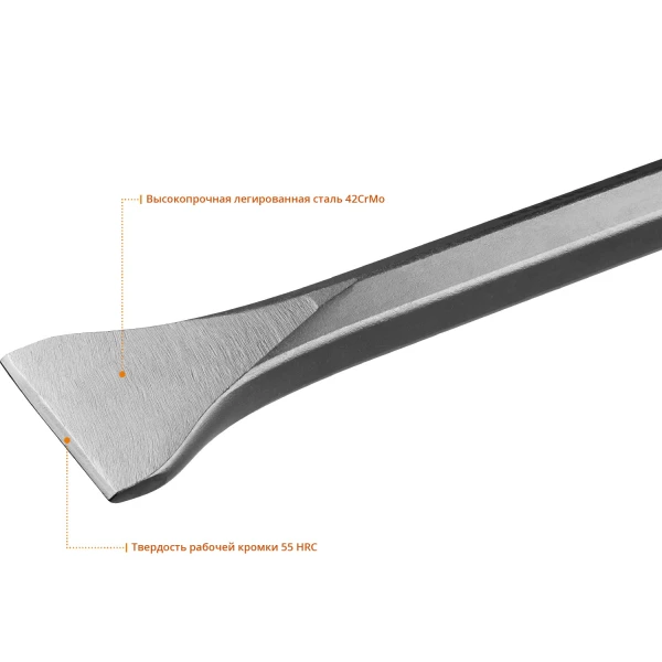 - Высокопрочная легированная сталь гарантирует продолжительный срок службы инструмента
