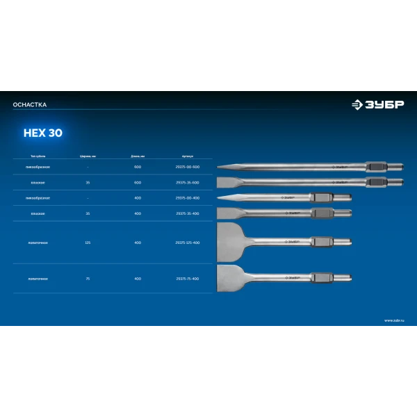 ЗУБР БУРАН, 125 х 400 мм, HEX 30, лопаточное зубило (29375-125-400)