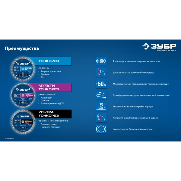 - Автоматическая трехсторонняя шлифовка зубьев для максимально точной геометрии режущих элементов и чистого реза