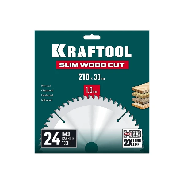 KRAFTOOL Slim wood cut 210 х 30 x 1.8 мм, 24Т, диск пильный по дереву, (36955-210-30-24)