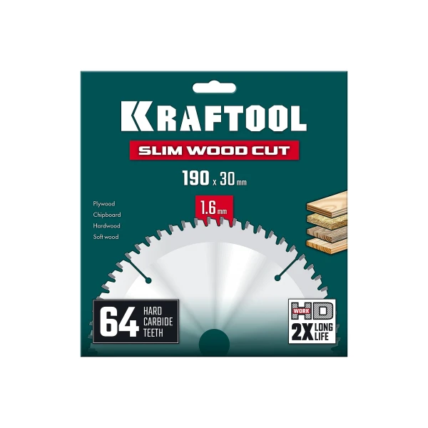 KRAFTOOL Slim wood cut 190 х 30 x 1.6 мм, 64Т, диск пильный по дереву, (36955-190-30-64)
