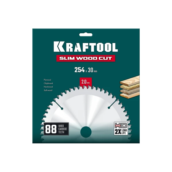 KRAFTOOL Slim wood cut 254 х 30 x 2.0 мм, 88Т, диск пильный по дереву, (36955-254-30-88)