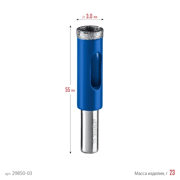 ЗУБР АГК, d 3 мм, (трехгр. хвост, Р60), алмазное трубчатое сверло, Профессионал (29850-03)