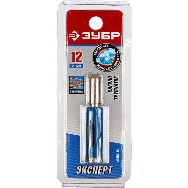 ЗУБР АГК, d 12 мм, (трехгр. хвост, Р60), алмазное трубчатое сверло, Профессионал (29850-12)