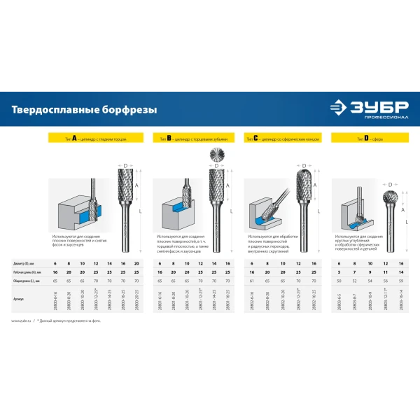 Твердосплавные борфрезы ЗУБР обеспечивают высокую производительность и могут использоваться для обработки различных материалов