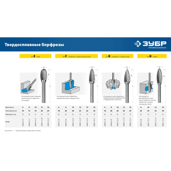 Твердосплавные борфрезы ЗУБР обеспечивают высокую производительность и могут использоваться для обработки различных материалов
