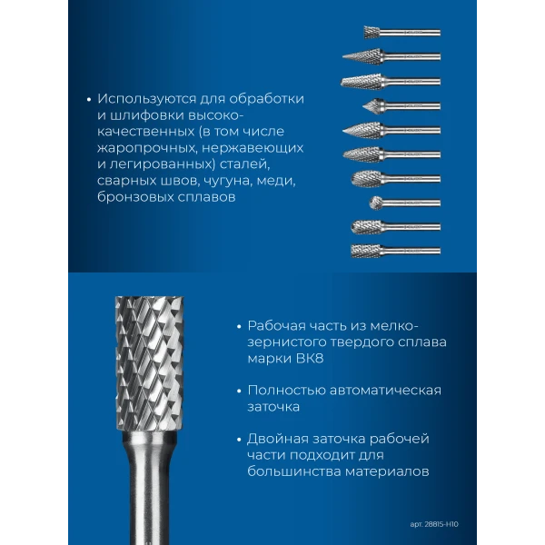 Твердосплавные борфрезы ЗУБР обеспечивают высокую производительность и могут использоваться для обработки различных материалов