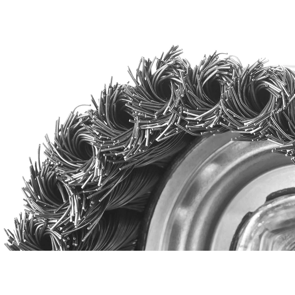 - Повышенный ресурс щетки благодаря еще более высокой жесткости сплетенного пучка и увеличенной толщине проволоки