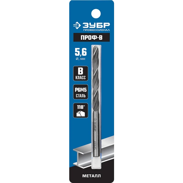ЗУБР ПРОФ-В, 5.6 х 93 мм, сталь Р6М5, класс В, сверло по металлу, Профессионал (29621-5.6)