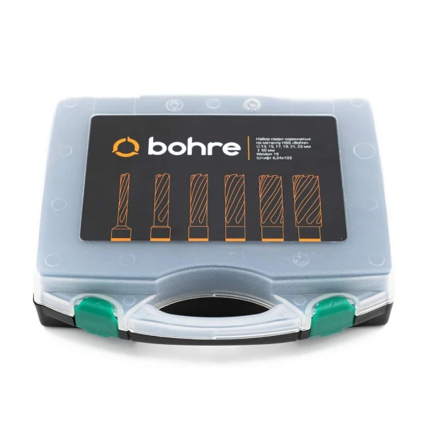 Набор сверл корончатых по металлу HSS Bohre 13,15,17,19,21,23 мм х50, Weldon 19, штифт 6,34х103