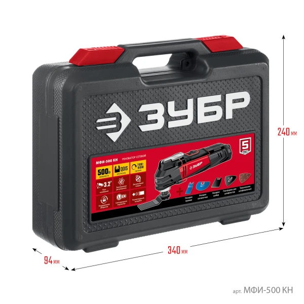 ЗУБР OQIS, 500 Вт, реноватор, кейс, набор насадок (МФИ-500 КН)