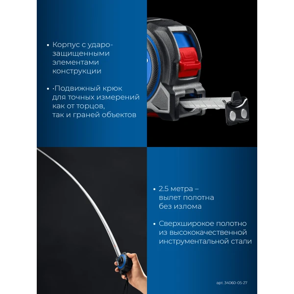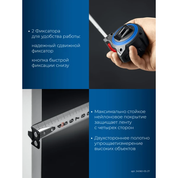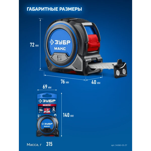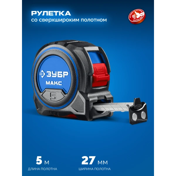 ЗУБР МАКС 5м х 27мм, рулетка со сверхшироким полотном (34060-05-27)