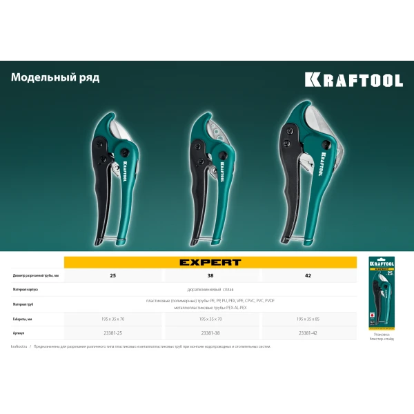 KRAFTOOL до 38 мм, высокоскоростной труборез по металлопластиковым и пластиковым трубам (23381-38)