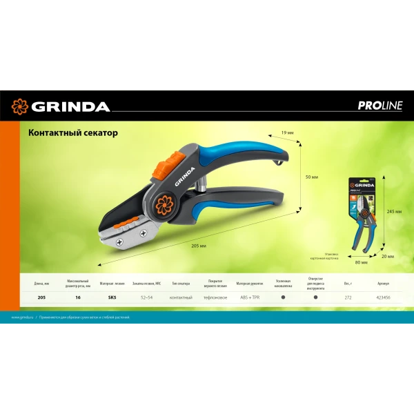 Профессиональные секаторы GRINDA PRO-LINE характеризуются самыми надёжными и современными материалами. Пользуясь этими секаторами вы обеспечите себе удовольствие и комфорт при работах в саду.